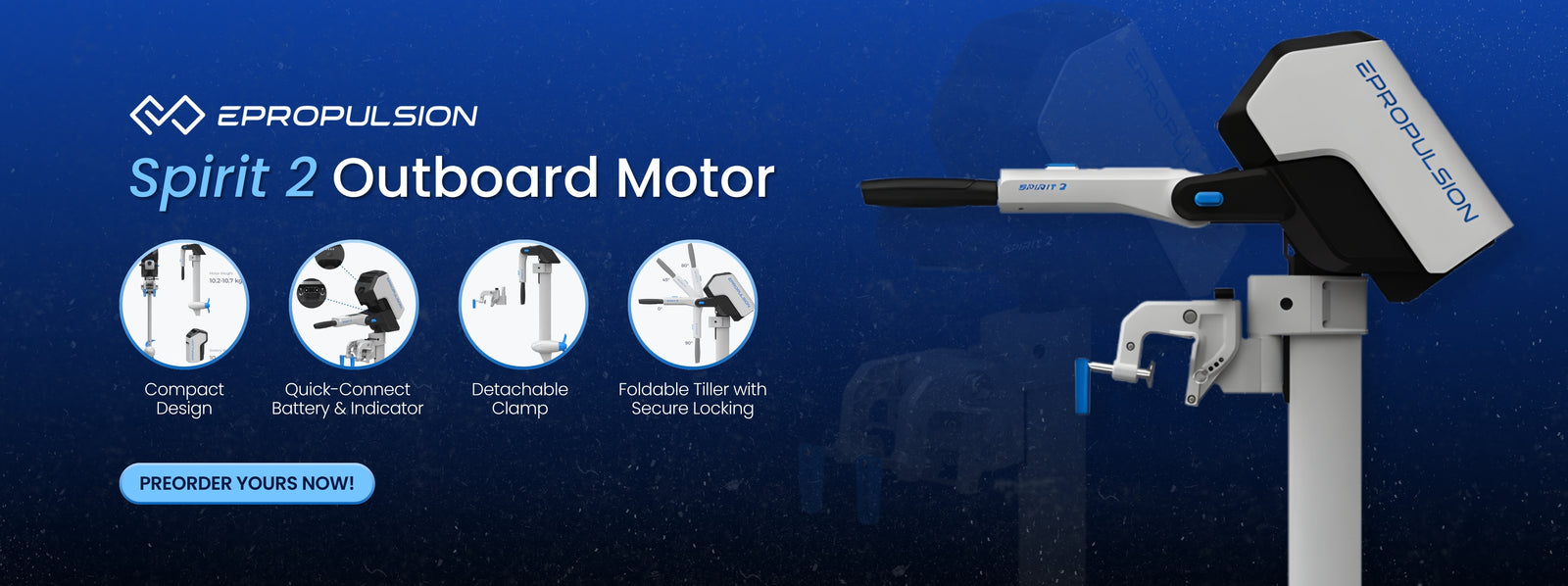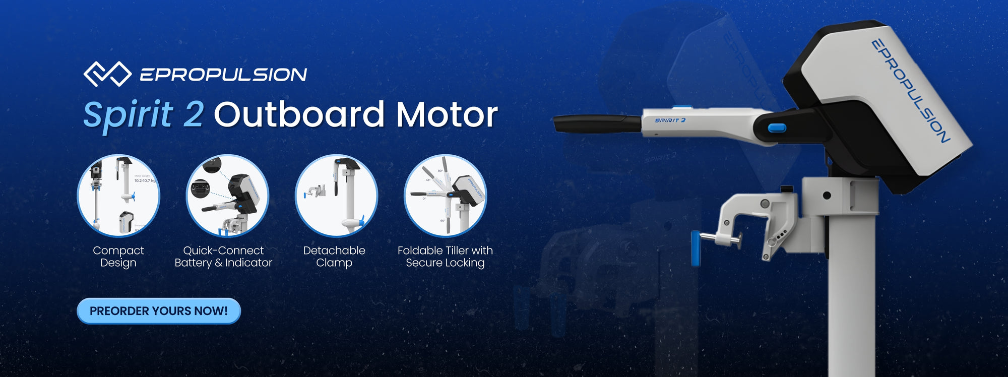 Experience the future of marine propulsion with the compact and lightweight ePropulsion eLite 1.5hp 500W 24V electric outboard motor. Its innovative design and commitment to sustainability make it the perfect alternative to traditional internal combustion engines. With easy set-up and transport, it's the ideal choice for eco-conscious enthusiasts.