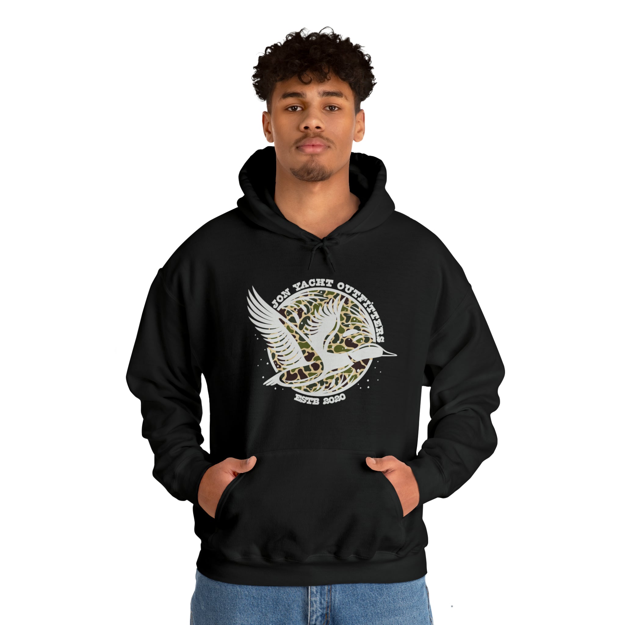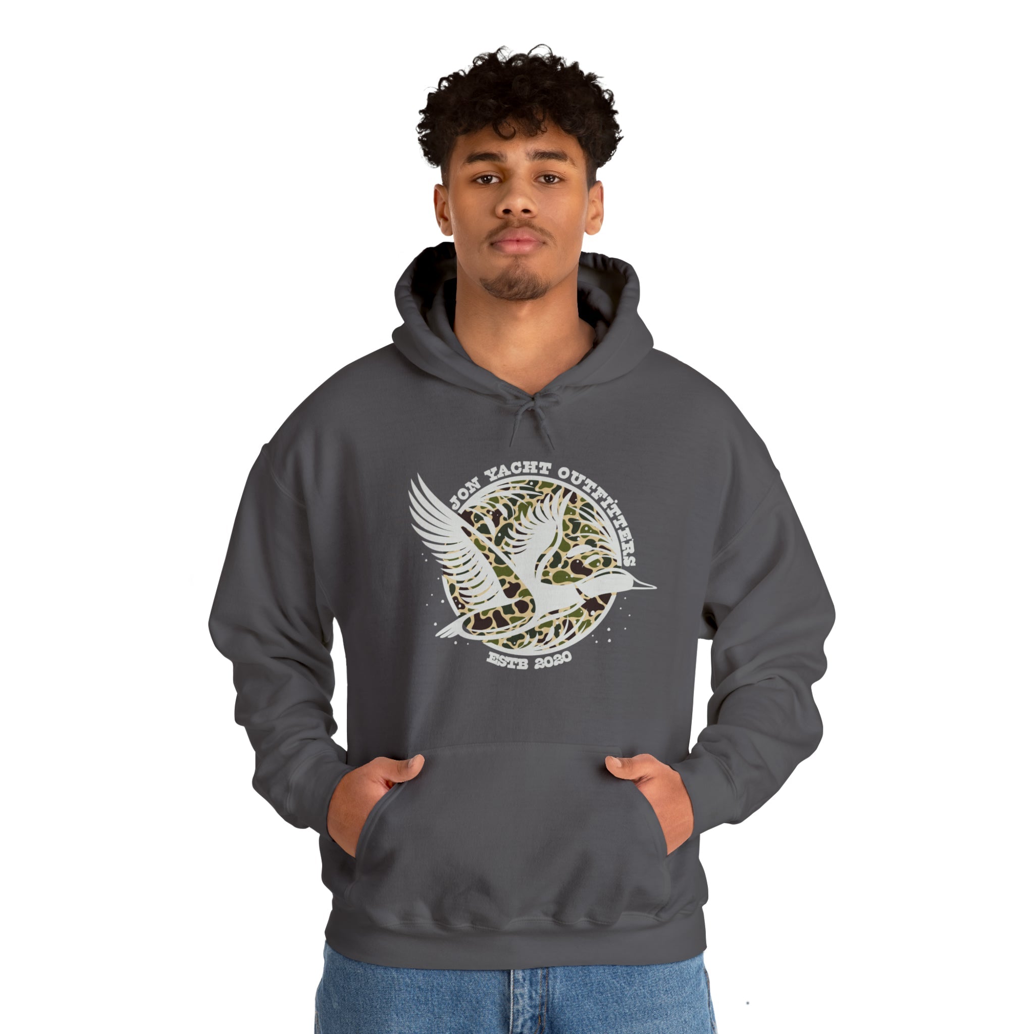 This heavy blend hooded sweatshirt is relaxation itself. Made with a thick blend of cotton and polyester, it feels plush, soft and warm, a perfect choice for any cold day. In the front, the spacious kangaroo pocket adds daily practicality while the hood's drawstring is the same color as the base sweater for extra style points.