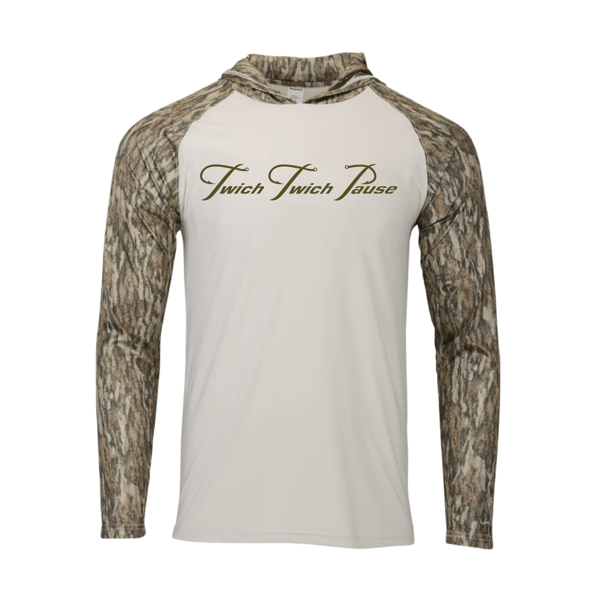 Stay cool and dry while looking your best when wearing this UPF 50+ performance fishing hoodie from TTP Outdoors. The sleeves, neck and hood feature Mossy Oak Bottomland with the front and back of the shirt being sand-stone. The back of this hoodie features a Patriotic Popper in dark olive with our company logo embedded in the design. Then chest features Twich Twich Pause company logo in dark olive. Features · Long Sleeve hoodie with Mossy Oak Bottomland pattern. · Chest and back screen printed logo & design · UV 50+ Sun Protection · Moisture wicking · Antimicrobial & wrinkle resistant finish · 2-ply hood Fabric · 3.5 oz · 100% Microfiber performance polyester Fit · Regular stretch fit Care · Turn Inside out and machine wash cold · Wash with like colors · Do not bleach · Hang dry or tumble and Cool iron, do not iron where decorated Note: Actual shades and colors of some products may vary slightly from pictures on this website. We do our very best to represent each product accurately.