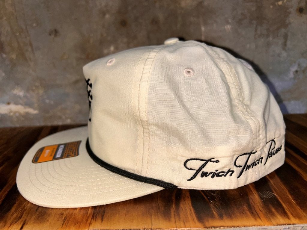 Show off your love of fishing with this good-looking and light weight Richardson 256 in Birch with Black Rope hat from TTP-Outdoors, displaying our custom Embroidered logo on the front and Twich Twich Pause embroidered on left ear. This unique and high-quality hat comes in a one size fits most adjustable snap back and boasts a UPF 50+ Rating. Features: UPF 50+ protects users from even the harshest UV damage Striated, woven nylon-cotton blend offers lightweight durability Standard cotton sweatband with added vapor barrier reduces sweat diffusion Note: Actual shades and colors of some products may vary slightly from pictures on this website. All leather patches are 100% genuine leather and will have imperfections and variations in color. We do our very best to represent each product accurately. With its mesh flip-up stay, flat bill, lightweight construction, classic Mid Pro crown, and UPF 50+ rating, this 256 offers all the benefits of modern cap design with classic golf vibes for a day on the links and beyond.